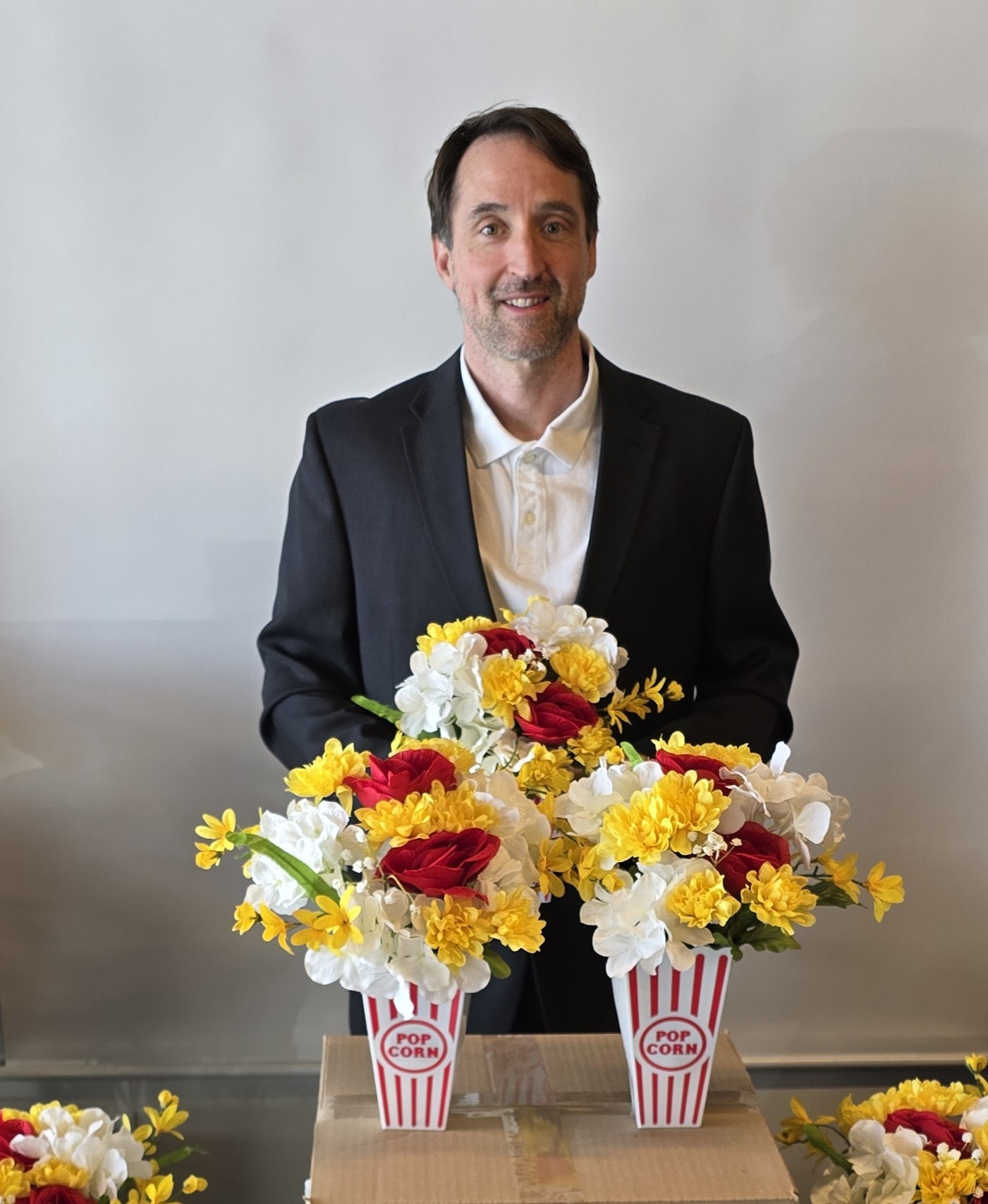Each arrangement is designed to feel playful—like a little celebration that made its way into the room. Bright red, white, and yellow blooms will be arranged in a fun popcorn-style container, created to look kid-forward, colorful, and uplifting. The flowers are permanent botanicals, selected so the gift can be enjoyed beyond Valentine’s Day and to support settings where fresh flowers may be limited.